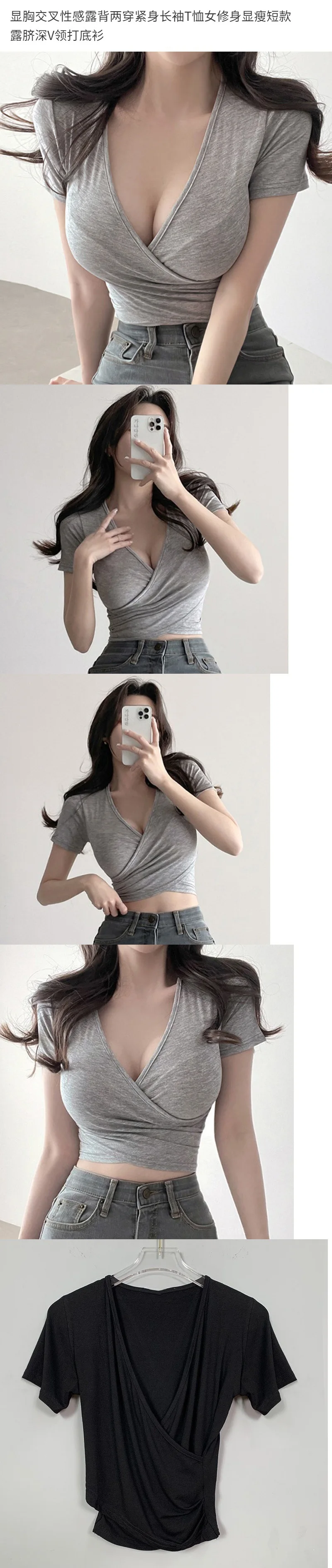 • Slimming Short Navel-exposed Deep V-neck :The slimming short navel-exposed deep V-neck base shirt enhances your silhouette, offering a sleek and stylish look.